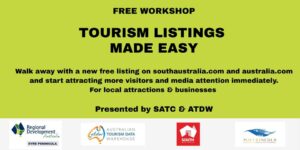 This FREE workshop is presented by the South Australian Tourism Commission (SATC) & the Australian Tourism Data Warehouse (ATDW) to help small businesses tap into a platform where visitors, media and other tourism organisations will be able to find you.